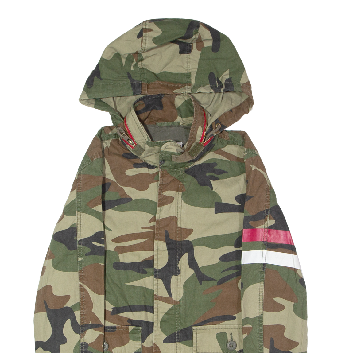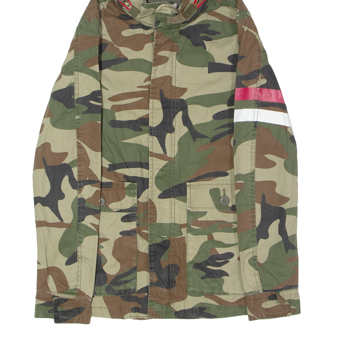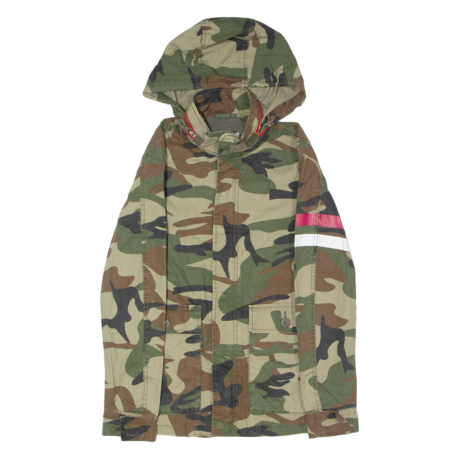 ZARA Womens Military Jacket Green Canvas Hooded Camouflage S